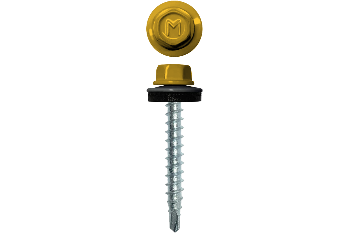 Специальная металлическая шайба с ЕРDМ-уплотнителем обеспечивает плотное прилегание профилированного металла (кровли) к обрешетке, а также препятствует попаданию влаги. Также ЕРDМ-уплотнитель защищает от перепада температур (за счет высокого содержания каучука), который адаптируется под окружающую температуру и не позволяет кровле «гулять», плотно прижимая ее.