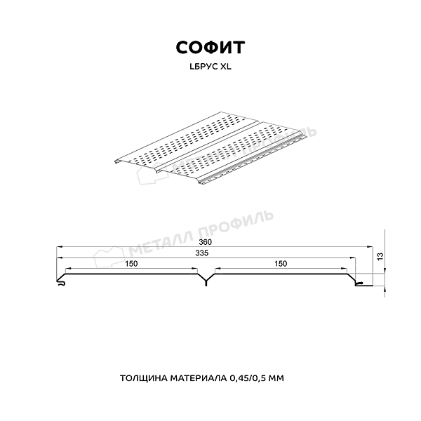 Софит МЕТАЛЛ ПРОФИЛЬ перфор. Lбрус-XL-14х335 (ПЭ-01-1035-0.45)